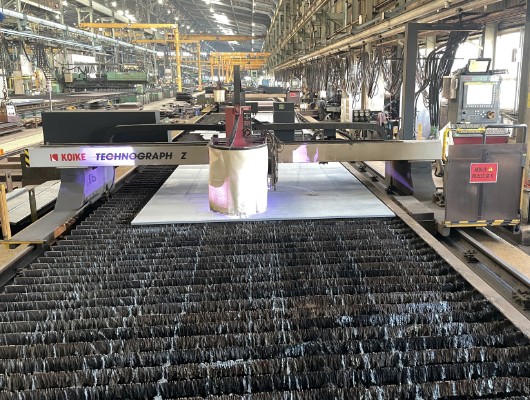 | NC/フレームプレーナ | 加工可能板厚範囲12mm-150mm | 加工可能板幅範囲NC ≦ 6,300mm フレームプレーナ ≦ 6,900mm |