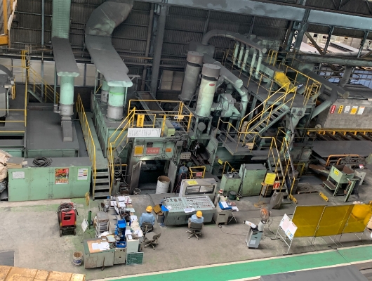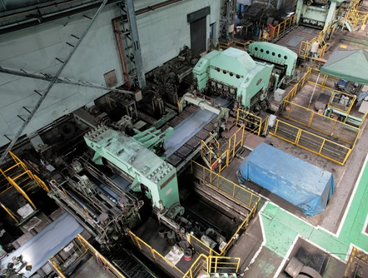 | 薄板レベラー | 加工可能材料熱延鋼板(酸洗材,黒皮材) | 加工可能板厚範囲1.6mm-3.2mm | 加工可能板幅範囲630mm-1,550mm | 加工可能長さ700mm-6,100mm | 最大コイル重量20T | 所有工場/保有数苅田工場/1基 |
