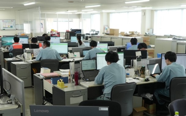 受注から出荷まで、すべての工程をホストコンピューターで管理しているため、作業工程の効率化や品質の向上を実現し、お客様からのご要望に短納期・高品質でお応えしています。受注したデータは、ホストコンピューターにより製品に応じた製造部門に共有され製造・出荷されます。